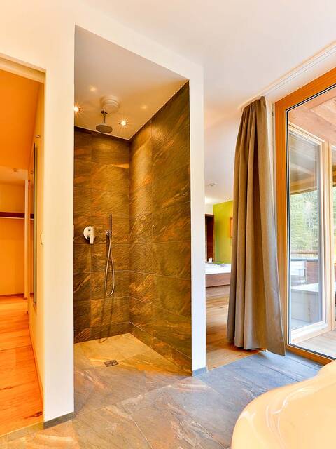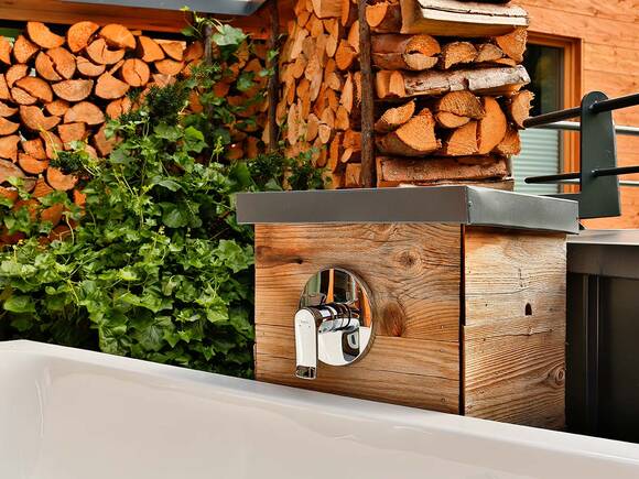 您希望在您最喜爱的私人场所打造乡间别墅风格浴室吗?那就最好利用木材或石材等材料的原始特性,以此打造您最喜爱的一块地方。现代建筑为创造性的浴室设计留出自由空间。在高山酒店贴近自然的氛围下,原始沐浴场所激发个性化浴室创意。在开放式露台的诱人环境中,独立式浴缸找到其落脚点。质朴的浴缸饰面与地板相协调,营造温暖的氛围。在由整齐排列的木柴所组成的墙壁的保护下,浴室在壮观的山景前带来加倍享受。