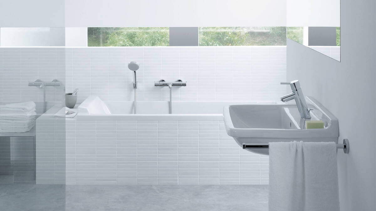 凭借其精致又自然的设计,汉斯格雅达丽丝系列龙头为该浴室风格注入活力。闪亮的镀铬表面在朴素的白色陶瓷上显得尤为典雅。在位于中央的淋浴区内,柯洛玛 100 淋浴"系统通过三种喷淋形式带来多变的淋浴乐趣。创新的汉斯格雅技术确保持久工作与极致舒适。