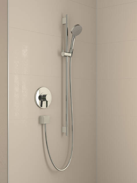 在花洒升降杆上,手持花洒可以固定在任何高度,以便家里的每个人都能在其所需高度上淋浴。汉斯格雅淋浴杆集成有花洒支架。其可以轻松滑动并牢牢固定花洒头,从而实现解放双手,并将喷淋朝所需方向引导。多款汉斯格雅升降杆还配备了用于放置淋浴用品的置物架。值得一提的是,创始人汉斯·格雅在 1953 年发明了 Unica 花洒升降杆,从而为浴室带来了更高的淋浴舒适性。如今,花洒升降杆已成为浴室中不可或缺的标准配置。
