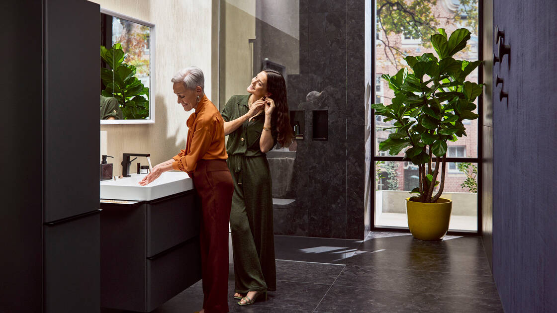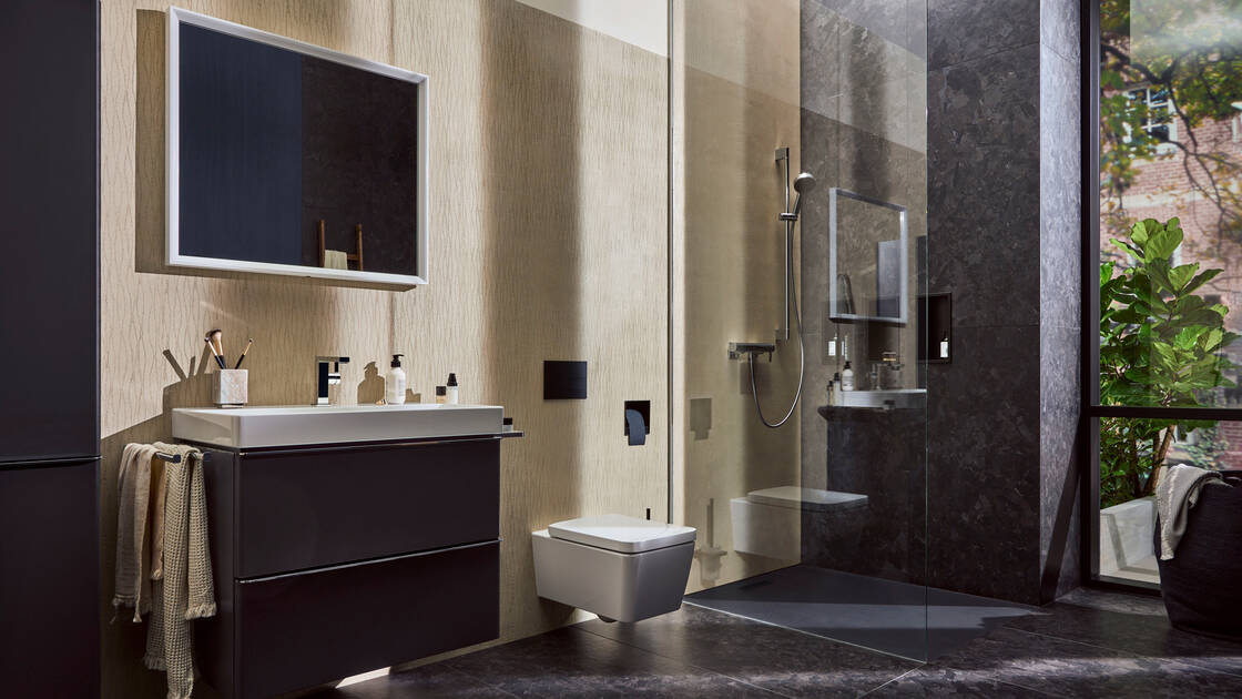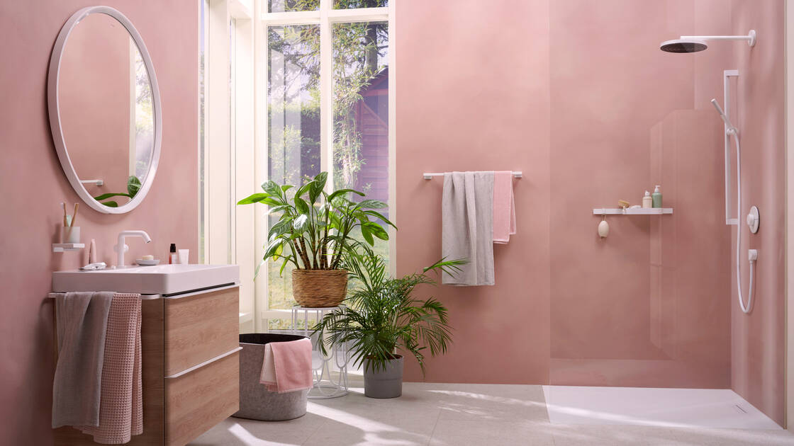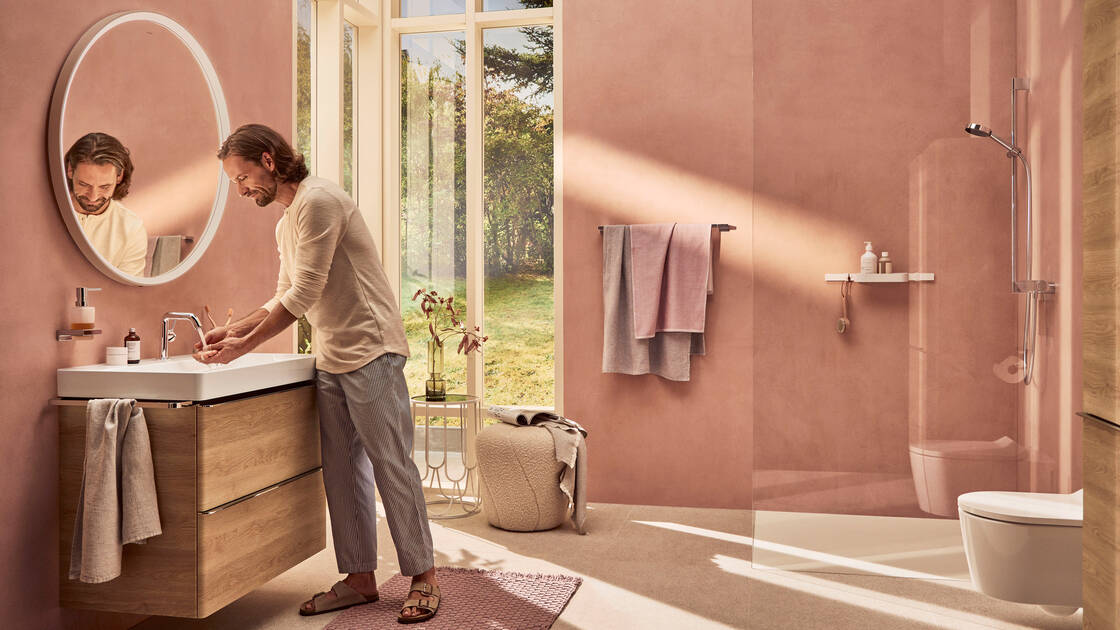 Tecturis 图睿偲S 与其他汉斯格雅产品轻松搭配。例如,淋浴房中的 沛适飞 S 手持花洒便是采用圆润的造型语言。