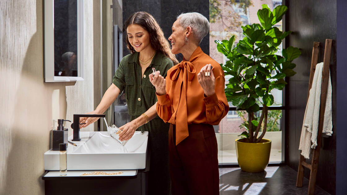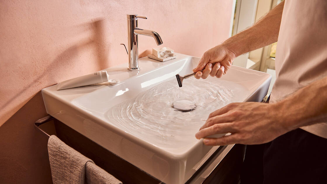 柔和的造型令人着迷:Tecturis 图睿偲S 恰似温和流淌之水。优雅圆润设计与柔和线条展现出纯粹的放松与愉悦。水波器优雅地藏于龙头出水口中——实现极简设计。得益于纤细造型与增大舒适区域,您在面盆享有更多的活动空间。