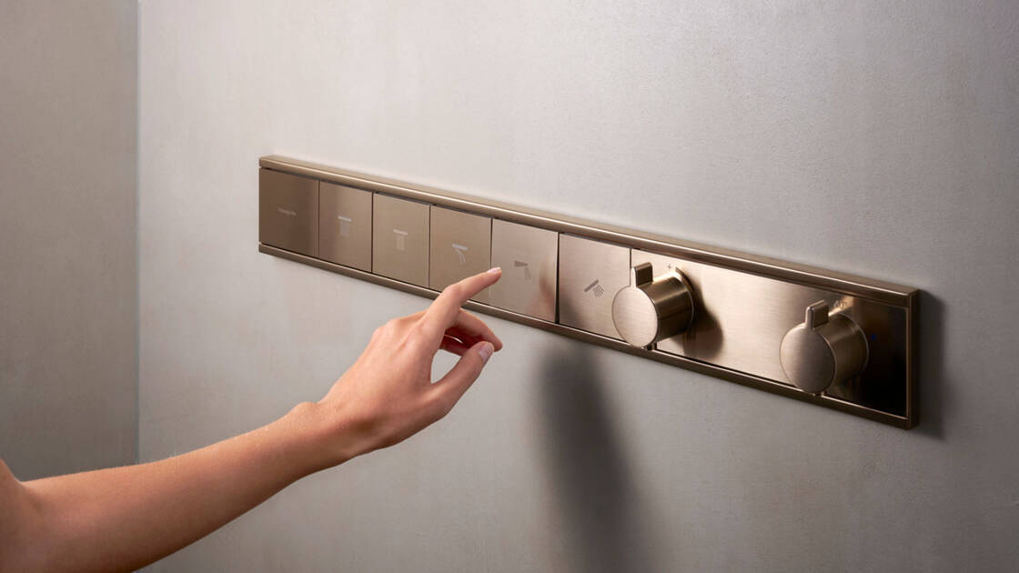 通过高质量的 FinishPlus 表面为您的浴室增添个性化点缀。除了镀铬,还可选择前卫白与摩登黑、博雅金色、睿智黑和奢华金等颜色款式的境雨产品。如果淋浴房内和面盆上的所有组件采用同一配色方案,那么您的浴室设计从整体上会显得和谐又时尚。